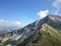 Albania can be divided into four main regions: Northern Range, Central Range, Southern Range and Western Lowlands. The most notable topographical features are the Ceraunian Mountains, Dinaric Alps, Korab Mountains, Pindus Mountains and the Skanderbeg Mountains.[2] The highest peak is Korab standing at 2,764 metres (9,068 ft) elevation above sea level on the border with the Republic of North Macedonia. It is one of only two summits in Europe, which is the highest peak for more than one country.[3] It is also the 18th most prominent mountain peak in Europe.[4]