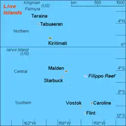 450 km east of Starbuck Island in the Pacific Ocean | 05.30°S 151.50°W | |