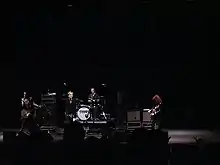 After two more albums – 1994's Flamejob and 1997's Big Beat from Badsville – and an extensive touring cycle, Slim Chance left the Cramps towards the end of 1998. For tour dates at the end of the year, and occasional performances during 1999 and 2000, bass was performed by Doran Shelley and later Sugarpie Jones (Tim Ferris).[14] The group remained inactive for much of 2001 and 2002, before announcing in August 2002 that it had started recording a new album with new permanent bassist Scott "Chopper" Franklin.[15] The album, Fiends of Dope Island, was released in April 2003.[16] Drumdini was fired in the summer due to problems with alcohol abuse, with "Jungle" Jim Chandler stepping in for dates later in the year.[17]