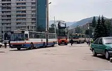 Rocar 117E and 217E in Brasov, Romania, 1994. It was one of the most used trolleybus types in Romania in the 1980s until the 2000s