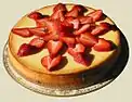 | New York-style cheesecake | ![]() | New York City, circa 1920s[13] | The typical New York cheesecake is rich and has a dense, smooth and creamy consistency,[14] and relies upon heavy cream or sour cream and cream cheese. Sour cream makes the cheesecake more resilient to freezing and is the method by which most frozen cheesecakes are made. However, a lavish variant uses sour cream as a topping, applied when the cheesecake is cooked. It is mixed with vanilla extract and sugar and replaced in the oven, so that it is twice-baked. |