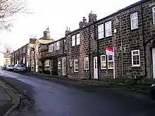 The historic core of the village is laid out in a formal terraced manner with two- and three-storied weaver cottages along narrow streets. South of Micklefield Lane a more formal landscape with larger houses, strong boundary treatments and a more landscaped setting is found. The late 19th century terraces are mostly two-storey buildings with grand bays, dentilled eaves, architraves and some rooms within gable features. Local sandstone is the predominant building material, with the roofs being made of stone slabs or slate. Gateposts, mall front gardens and yards bounded by stone walls with coping stones are characteristic for the village. Some traditional stone paving has survived. Only two of the key historical buildings, Buckstone Chapel and the Sunday School, were demolished in 1992.[7]