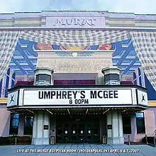 Live at the Murat is the fourth live album by progressive rock band Umphrey's McGee, recorded over Easter Weekend at the Murat Centre's Egyptian Room in Indianapolis, Indiana. The album was released October 16, 2007. The album contains favorites such as "Push the Pig," "The Triple Wide," "In the Kitchen," "Nothing Too Fancy," and "Padgett's Profile."