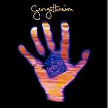 For the album's striking front-cover image, Wilkes used a Kirlian photograph of Harrison's hand holding a Hindu medallion.[127] The photo was taken at UCLA's parapsychology department, as was the shot used on the back cover, where Harrison instead holds three US coins: a couple of quarters and a silver dollar.[121]