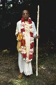 Throughout this period, Harrison's devotion to Hindu spirituality – particularly to Krishna consciousness via his friendship with A.C. Bhaktivedanta Swami Prabhupada[21] – reached new heights.[22][23] As Harrison admitted, his adherence to his spiritual path was not necessarily consistent.[24][25] His wife, Pattie Boyd, and their friend Chris O'Dell would joke that it was hard to tell whether he was dipping into his ever-present Japa Yoga prayer bag or "the coke bag".[26] This duality has been noted by Harrison biographers Simon Leng and Alan Clayson: on one hand, Harrison earned himself the nickname "His Lectureship" during his prolonged periods of fervid devotion;[27] on the other, he participated in bawdy London sessions for the likes of Bobby Keys' eponymous solo album and what Leng terms Harry Nilsson's "thoroughly nasty" "You're Breakin' My Heart", both recorded in the first half of 1972.[19][28] Similarly, Harrison's passion for high-performance cars saw him lose his driving licence for the second time in a year after crashing his Mercedes into a roundabout at 90 miles an hour, on 28 February, with Boyd in the passenger seat.[29][30][nb 2]