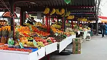 The Ljubljana Central Market (Slovene: Osrednja ljubljanska tržnica) is a market in Ljubljana, Slovenia. The riverside market building, sometimes referred to as Plečnik's Market (Slovene: Plečnikova tržnica), was designed by Jože Plečnik between 1931 and 1939.[1] It stretches between the Triple Bridge and the Dragon Bridge, on the right bank of the Ljubljanica River.[1][2] The marketplace and Vodnik Square (Slovene: Vodnikov trg), where it is located, are cultural monuments of national significance. It is partly located at Adamič and Lunder Embankment (Adamič-Lundrovo nabrežje) and at Pogačar Square (Pogačarjev trg).
