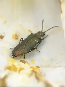 Lobonyx aeneus is a species of soft-winged flower beetles in the family Prionoceridae, found in the Iberian Peninsula and North Africa.[1]