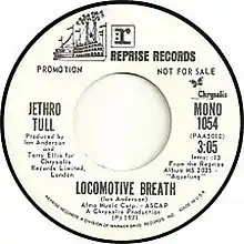 "Locomotive Breath" was released on Jethro Tull's 1971 album Aqualung in 1971. An edit of the song was released in the US as a single in 1971, backed with "Wind-Up", though it did not chart. A 1976 single release of the song, backed with "Fat Man", was more successful, reaching number 59 on the Billboard charts[8] and number 85 in Canada.[9] The song was also released as the B-side to "Hymn 43". Since its initial releases, the song has appeared on multiple compilation and live albums, including Living in the Past, M.U. - The Best of Jethro Tull, and Bursting Out. The song receives frequent airplay on classic rock radio stations.