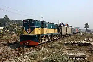 In 1961, there were 415 steam locos (both broad-gauge and meter-gauge) in the then East Pakistan, out of which, 262 were more than 30 years old.[1] Also there were 51 meter-gauge diesel locos, among which, 40 were class 2000 and 11 were class 3000 locos.[1] As of 2020, total 476 meter-gauge and broad-gauge diesel locos (including the old 11 class 3000 locos) have been imported in Bangladesh. Most of them are diesel-electric, but 80 locos are diesel-hydraulic. Among the 476 locos, 349 are meter-gauge and 127 are broad-gauge.[2] All diesel-hydraulic locos were produced by Ganz-MÁVAG of Hungary. Various companies produced the diesel-electric locos, notable among them are GMD, ALCO, MLW, Hyundai Rotem. and DLW, Progress Rail.[3][4][5][6]