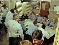 Paul Knight decided it was time for a real shock—a tragic exit for one of the main characters, who had starred in the show for nearly ten years. The man who was to be killed was Sub Officer John Hallam—a dedicated and loyal member of the watch and the London Fire Brigade. Hallam was killed off in 1996 (Series 9) during a huge warehouse fire, where he and his colleague, Leading Firefighter Geoff Pearce, were attempting to rescue four teenage girls on an unstable gantry 80 feet (24 m) above a blaze in the basement. Hallam held the gantry steady for Pearce as he walked across with one of the girls. As Hallam attempted to cross, the gantry cracked and Hallam fell to his death. The writers developed a storyline about Pearce feeling an overwhelming sense of guilt after the accident, which would lead to him considering a transfer.