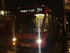 Transport for London awarded HCT Group subsidiary CT Plus a contract to operate route 394 from 3 May 2003.[4] Upon being re-tendered, CT Plus retained the route with a new contract commencing on 1 May 2010.[5] At the same time, the route was extended to Homerton and the vehicles on the route changed to low-floor Dennis Dart SLFs. The frequency of the route was increased; from initially using just two vehicles, it now requires 10 buses.[6]