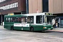 In 1989 a new livery of green and grey was introduced.[8] The two years between 1988 and 1990 proved difficult for the company: in May 1988 it was found guilty by the area Traffic Commissioner of having failed to operate local bus services in accordance with registrations, and banned from registering any new routes for three months.[3]