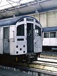 While in operational service, a number of changes were made to the vehicles. When first delivered, Wedglock automatic couplers were fitted to the motor cars in the middle of the train, which provided mechanical, pneumatic and electrical connection. The motor cars at the outside ends of the units were only fitted with mechanical couplers. These were changed to Wedglock couplers as part of the work to make them compatible with the 1959 Stock. The renumbering of the cars into the same series as the 1959 Stock took place in 1965.[8] In 1971–72, stabling lights were fitted, located at the bottom right of the five headcode lamps,[9] and in 1989, the headcode lights were replaced by two headlights, although the placement was somewhat different from that of the 1959 Stock.[10]