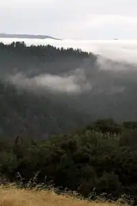 Long Ridge is a hill located in the Santa Cruz Mountains in the San Francisco Bay Area, California. The hill rises to an elevation of about 2,600 feet (792 m) on private property near Highway 35 and the Santa Clara-San Mateo county line.[3][4] The hill is the highest point in San Mateo County.[4] A hill to the northeast of Long Ridge rises to 2,566 feet (782 m).[3] Some snow falls on the mountain during the winter.[4][5]