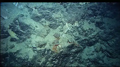 In July and August 2018, the French TRANSECT cruise was conducted on L'Atalante utilizing the ROV VICTOR to collect a variety of measurements and samples.[18] The following month, American cruise AT42-01, nicknamed Return to the Lost City, was undertaken to revisit the vent field after many years, featuring many members of the original discovery team in 2000.[19][20] Photographs, ambient gases, cells for cultures, rock, vent fluid, and ambient seawater samples were collected using the ROV Jason II and a CTD Niskin rosette.[21] The mission's key objectives were to collect biological and geochemical samples for researching sources of energy for microbial life. They also followed up on the 2015 borehole expedition by attempting to sample from the drilled holes for access to residual fluids.