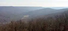 ![]() Upper Lost Cove from Sewanee, Tennessee. The Saddle is in the distance above Lost Cove Cave | |