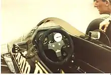 Mansell, meanwhile, finished third in France and the Netherlands, and was running second in the final race in Portugal when his brakes failed (which handed Niki Lauda the Drivers' Championship by half a point from Alain Prost). However, he also crashed out of the lead at a rain-hit Monaco (which prompted team boss Peter Warr, with whom he had a difficult relationship, to famously declare, "He'll never win a Grand Prix as long as I have a hole in my arse"[3]), and in oppressive heat at Dallas he took pole position and led the first half of the race, before his gearbox failed on the final lap and he collapsed from exhaustion trying to push the car to the finish line.[4] He ultimately finished equal ninth in the Drivers' Championship with 13 points, the same tally as Ayrton Senna, who would replace him for 1985.