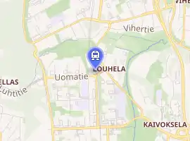 The residential area of Louhela, built in Vantaa in the 1960s (then still known as Helsingin maalaiskunta), was designed to revolve around a metro station, placed in the intersection of the streets of Louhelantie and Uomatie. As the municipality along with the city of Helsinki took upon the planning of a commuter rail line instead, the idea of a station in Louhela was not originally in the cards as it and the rest of Myyrmäki were meant to be served by a single station by the name of Etelä-Vantaa. The plan was canned as the planned line was moved further east in 1971.[3]