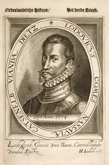 Louis of Nassau (Dutch: Lodewijk van Nassau, January 10, 1538 – April 14, 1574) was the third son of William, Count of Nassau and Juliana of Stolberg, and the younger brother of Prince William of Orange Nassau.