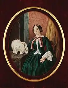 ![]() Miniature portrait of Louisa Holthuysen with her Maltese lion dog, c. 1840-1860 | |