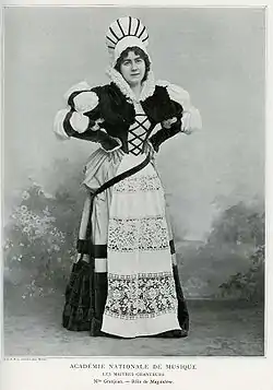 Grandjean studied at the Conservatoire de Paris before making her professional opera debut in 1893 at the Opéra Comique as Isabella in Le Pré aux clercs. She sang numerus roles at that opera house over the next nine years, including Alice Ford in France's first production of Verdi's Falstaff in 1894. Beginning in 1895 she was also a member of the Opéra National de Paris, making her debut as The Page in Richard Wagner's Tannhäuser. She sang numerous roles with the national opera until 1911, including the world premieres of Xavier Leroux's Astarté (1901), Jules Massenet's Ariane (1906), and Fernand Le Borne's La Catalane (1907).[1]