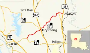 La 123—From a junction with La 8 northeast of Colfax through or near Dry Prong and Breezy Hill to a junction with La-US 165.