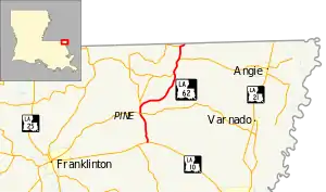 La 62—From a junction with La 10 at or near Sheridan through or near Pine and State Line to the Mississippi State Line.