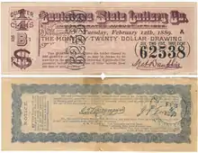 The Louisiana State Lottery Company was a private corporation that in the mid-19th century ran the Louisiana lottery. It was for a time the only legal lottery in the United States, and for much of that time had a very foul reputation as a swindle of the state and citizens and a repository of corruption.