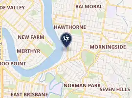 Lourdes Hill College is situated on the Bulimba Reach of the Brisbane River in suburban Hawthorne, across the river from New Farm Park. The campus is 5 kilometres (3.1 mi) from the Brisbane central business district.[8]