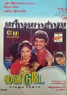 Love Today is a 1996 film written and directed by Balasekaran, who made his debut with the venture. This film stars Vijay, Suvalakshmi and Manthra while Raghuvaran, Karan and Sriman all play other supporting roles. The film received positive reviews from critics and was very successful at the box office. The film ran for over 250 days.[1][2][3] It was remade in Telugu as Suswagatham, in Kannada as Majnu, and in Hindi as Kya Yehi Pyaar Hai.