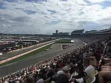 Contained within the main oval is a 2.28 miles (3.67 km) road course and a 0.6 miles (0.97 km) Kart course. The autumn races for both the NASCAR Cup Series and the NASCAR Xfinity Series take place on the road course, promoted as a "Roval". The final version was announced on January 22, 2018. The layout combines the 1.5-mile oval with the infield road-racing section over 17 turns.[19] In 2019, the Roval's backstretch chicane was redesigned, with an increase in width from 32 feet to 54 feet. The redesign requires heavier braking and a sharper entry, but allows better passing opportunities.[20]