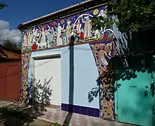 The original lubki were woodcuts.[7] The Koren Picture-Bible, 1692-1696 established the most prominent style, an "Old Russian" rendering of international iconography and subjects, most closely related to the frescos of the Upper Volga.[8] By mid-18th century, however, the woodcuts were mostly replaced with engraving or etching techniques, which enabled the prints to be more detailed and complex.[9] After printing on paper, the picture would be hand-colored with diluted tempera paints.[10] While the prints themselves were typically very simplistic and unadorned, the final product, with the tempera paint added, was surprisingly bright with vivid colors and lines. The dramatic coloring of the early woodcut prints was to some extent lost with the transfer to more detailed engravings.[7]