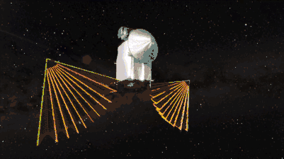 Lucy spacecraft solar arrays deploying and main engine burn