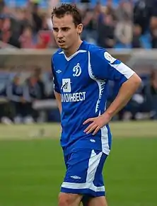 He made his Russian Premier League debut for Dynamo Moscow on 31 August 2008, playing the full 90 minutes against FC Moscow at the Dynamo Stadium in Moscow.[55] He scored his first goal for Dynamo from a penalty on 27 September 2008, playing against Krylya Sovetov in Samara, Russia.[56] Wilkshire then scored his second goal of the season, in a 3–1 loss against CSKA Moscow on 27 October 2008.[57] Wilkshire became a first team regular at the club and finished his first full season, making eleven appearances and scoring two times in all competitions.