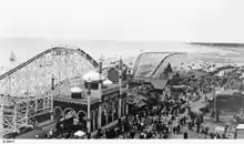 Luna Park was officially opened to the public on 4 October 1935, to almost immediate success.[7]: 58, 68 Long queues waited in front of the park's notable entry's giant face, designed by Rupert Browne. Most wanted to rush in and be first on the Big Dipper, the park's rickety roller coaster ride.[8] The North Sydney Olympic Pool was opened the following year on an adjacent site.[1] After a successful opening season, the park closed down for the winter months (a process which was repeated until 1972).[7]: 68 During the closed season, rides were overhauled and repainted, and new rides and attractions were added, to provide the impression to patrons that the park had changed during the three-month closures.[7]: 68