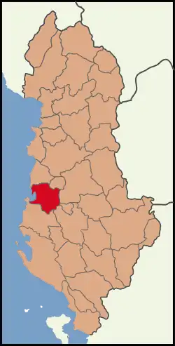Lushnjë District (Albanian: Rrethi i Lushnjës) was one of the 36 districts of Albania, which were dissolved in July 2000 and replaced by 12 newly created counties. It had a population of 144,351 in 2001, and an area of 712 km2 (275 sq mi).[1] It was in the west of the country and 80 km south of Tirana, and its capital was the city of Lushnjë. Its territory is now part of Fier County: the municipalities of Lushnjë and Divjakë.