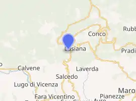 Lusiana (Cimbrian / German: Lusaan) is a small town in the province of Vicenza, Veneto, Italy, in the comune of Lusiana Conco. The town is situated at about 750 metres (2,460 ft) above sea level on the Asiago plateau .
