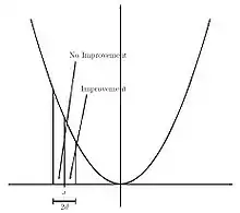 When the current position x is far from the optimum the probability is 1/2 for finding an improvement through uniform random sampling.