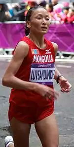 Luvsanlkhündegiin Otgonbayar, (Mongolian: Лувсанлхүндэгийн Отгонбаяр; born July 13, 1982)[1] is a Mongolian athlete. She has represented her country by running the marathon at competitions such as the 2004 Summer Olympics, the 2006 Asian Games, the 2007 World Championships and the 2012 Summer Olympics.