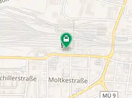 Mühldorf (Oberbayern) station is a railway junction and station in the district town of Mühldorf in the German state of Bavaria. The station has seven platform tracks and is classified by Deutsche Bahn as a category 4 station. The station is served by 105 passenger trains each day operated by the Südostbayernbahn and frequented by about 10,000 travellers.[4] It is also the central station of the “Bavarian Chemical Triangle” (Bayerisches Chemiedreieck). About 800 freight wagons are dispatched from it daily.