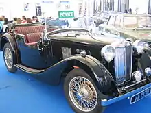 The car used a tuned version of the push-rod, overhead valve four-cylinder Morris TPBG type engine that was also fitted to the Wolseley 12/48 and Morris Twelve series III. The MG version had twin SU carburettors and developed 54 bhp (40 kW) at 4500 rpm. Drive was to the live rear axle via a four-speed manual gearbox with synchromesh on the top three ratios, though on some early cars it was only on the top two speeds. 19-inch wire wheels were fitted, and the 10-inch (250 mm) drum brakes were hydraulically operated using a Lockheed system. In-built hydraulic jacks were standard. Suspension was by half-elliptic springs all round with a live rear axle and beam front axle. Luvax shock absorbers were fitted, the rear ones adjustable from the dashboard.