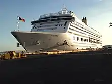 MV Aurora is a cruise ship of the P&O Cruises fleet. The ship was built by Meyer Werft at their shipyard in Papenburg, Germany. At over 76,000 tonnes, Aurora is the smallest and oldest of six ships currently in service with P&O Cruises. She officially entered service with the company in April 2000 and was named by Anne, Princess Royal in Southampton, United Kingdom. Aurora was refitted in 2014, during which the ship was the first of P&O's ships to receive an updated British Union flag design on her bow and her funnel repainted from yellow to blue.[1]