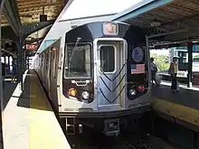 An R143 M shuttle train at Myrtle Avenue-Broadway