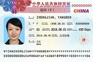 Chinese visa (2019)