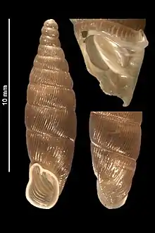 Macrogastra rolphii, known as Rolph’s door snail, is a species of air-breathing land snail, a terrestrial pulmonate gastropod mollusk in the family Clausiliidae, the door snails. [1]