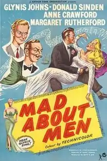 Mad About Men is a 1954 Technicolor British comedy film. It was directed by Ralph Thomas and written by Peter Blackmore, who also wrote the 1948 film Miranda which preceded Mad About Men. Glynis Johns appears in both films as the mermaid Miranda.[1] However, Rank Films insisted it was not a sequel.[2]