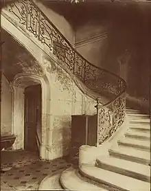 Before her death, as part of her sentence, the Marquise was subjected to a form of torture known as the water cure where the subject was made to drink (often through a funnel) copious amounts of water in a short period of time.[5][13] In his account, Pirot noted that when faced with the prospect of torture, the Marquise said she would confess to all, however, she noted that she knew that this would not alleviate her sentence of torture.[6][10][12] She added no new information that she had not already confessed under torture except for adding that she once sold poison to a man who intended to kill his wife.[6][9] After four hours of torture she entered a final confession session with Pirot in the prison chapel.[7] She was not allowed to take communion before her death due to laws at the time forbidding condemned prisoners to take it.[8] As she left the chapel, a crowd of aristocrats gathered to see the spectacle of her death march as she and the abbé traveled to the Place de Grève for her execution.[8] The Marquise was covered in a white slip as was customary outfit for the condemned at their execution.[3] On the way to her execution, they stopped at Notre Dame so that the Marquise could perform the Amende Honorable inside of the packed Cathedral.[9][10] When they finally reached the Place de Grève the Marquise was unloaded from the cart she was in and brought up to a platform.[3] The executioner shaved her hair before pulling out a sword and chopping off her head.[3][6] The surrounding area was packed with spectators who hoped to grasp a glimpse of her execution.[5][10] The Madame de Sévingé was among them, and in fact, her most well-known letter mentions the Marquise's execution.[14] After the beheading, the Marquise's body was burned of which the madame de Sévigné quotes that Brinvilliers (or, rather, her ashes) were "up in the air".[3][14]