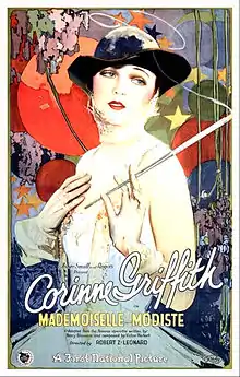 Mademoiselle Modiste is a 1926 silent romance produced by and starring Corinne Griffith and distributed by First National Pictures. Robert Z. Leonard directed Griffith in a story based on a popular 1905 Victor Herbert operetta on Broadway, Mlle. Modiste,[1] with a libretto by Henry Martyn Blossom, which was similar to the MGM film The Merry Widow. It is now considered a lost film.[2][3]