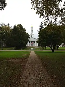 Madison Green is the town green of the New England town of Madison, Connecticut. The green is the centerpiece of the Madison Green Historic District,[2] and is located just west of the commercial strip of Madison on United States Route 1. The green is bounded on the south by US 1, Meeting House Lane on the east and north, and Copse Road on the west. Surrounding the green are several buildings, most prominent being the First Congregational Church (built in 1838). Other buildings around the green include Memorial Hall (1896), a community meeting building (c. 1884), Academy Elementary School (1884), and Lee Academy (1821).