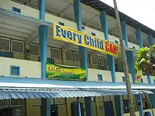 One of the school blocks. Big banners like these are hung around the school to create a vibrant environment.